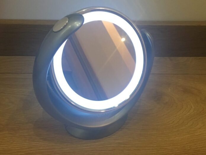 Lusterko posiada wygodny przycisk, który uruchamia jego moc – staje się światłość. Jest także obrotowe, dzięki czemu z jednej strony mamy zwykłe lustro, a z drugiej mamy powiększenie x10!