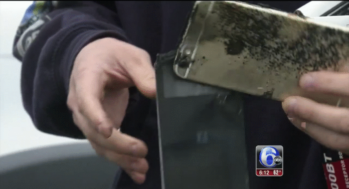 fot. 6abc.comHlavaty twierdzi, że jego sześciomiesięczny iPhone nie posiadł żadnych wad mechanicznych, które mogłyby spowodować eksplozję urządzenia. Jedynym mankamentem telefonu było drobne pęknięcie, jednak, jak sam stwierdził, raczej nie jest ono powodem zaistniałej sytuacji.